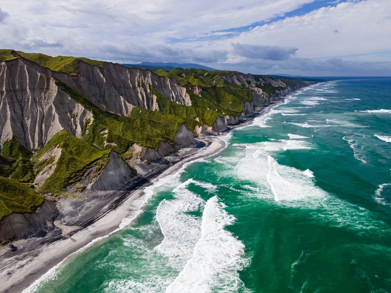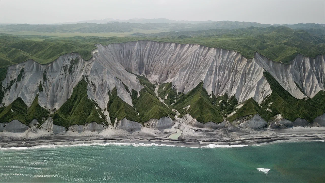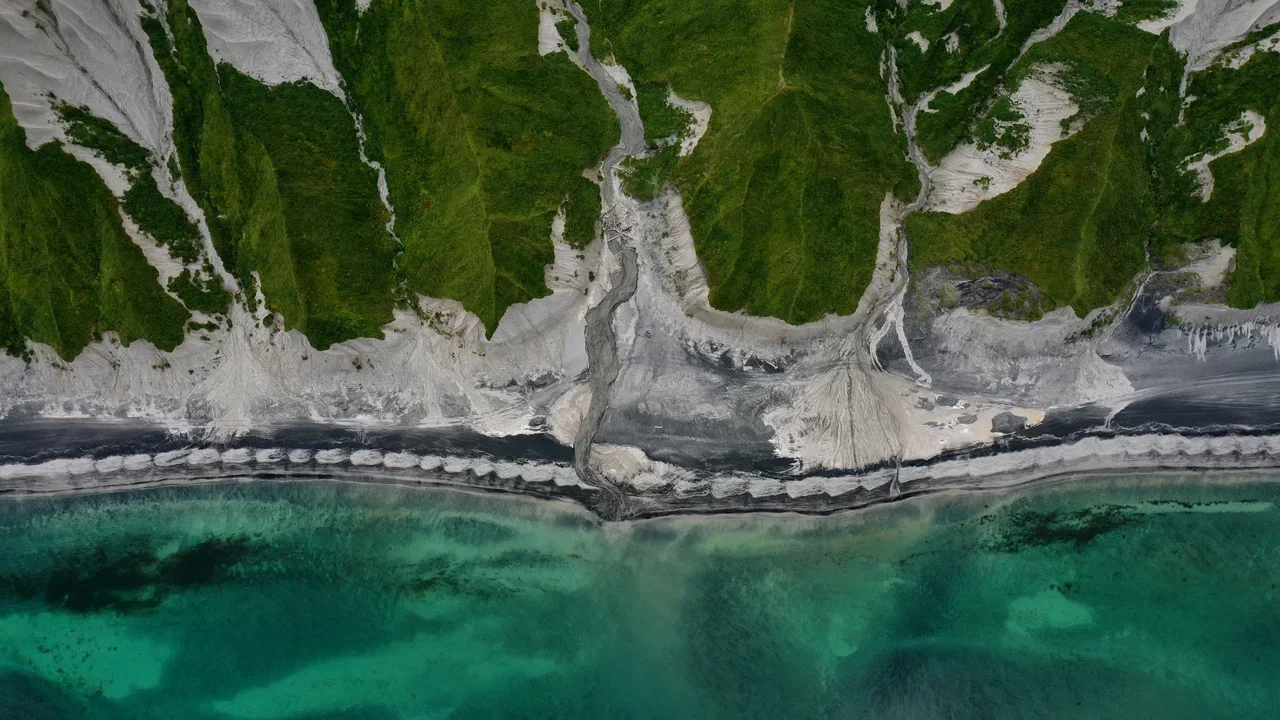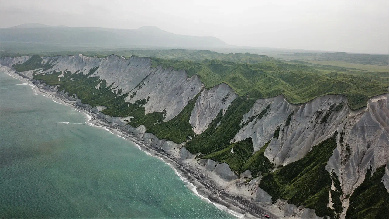 Белые скалы — это потрясающее творение стихии в природе. Растянутые на 28 километров вдоль побережья Охотского моря на острове Итуруп. Горы, состоящие из мягкой пемзы образованной после извержения вулкана, поражают своей красотой. Особенное очарование этому месту придаёт изумрудная зелень, которая обрамила образовавшуюся композицию. Пемза претерпела сильную эрозию под воздействием штормов Охотского моря, дождей и многочисленных малых рек и ручьев, которые в итоге сформировали причудливые и изумительные формы скал. Песок прибрежной полосы смешанный: белый кварцевый и черный титано-магнетитовый. От такого соединения образуется его красивый темно-белый цвет.