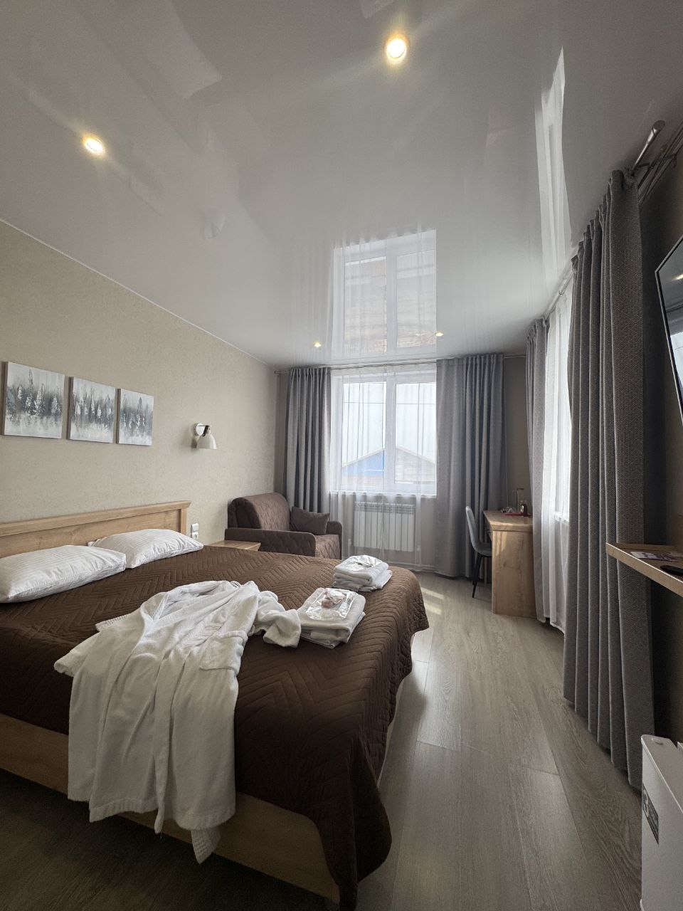 Гостевой дом предоставляет все необходимые удобства для вашего комфортного пребывания, включая кухню, общие зоны для отдыха, крытый бассейн, баню с парной, хамамом, кедровой бочкой, инфракрасной кабинкой и массажным креслом.