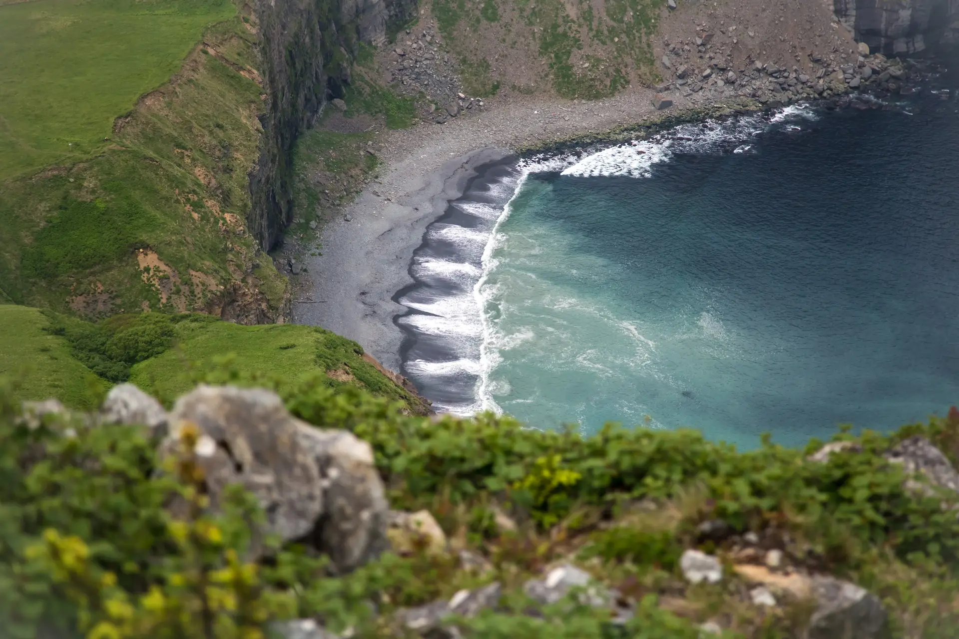 Бухта Безымянная — это одно из самых красивых мест, расположенных на восточной стороне острова Шикотан. Она известна своими прекрасными островками, которые находятся внутри бухты и напоминают исландский ландшафт. Пена у подножия каменных останцев меняет свои орнаменты. Океан отсюда то сияет в свете солнечных лучей, то становится свинцовым, то изумрудным.