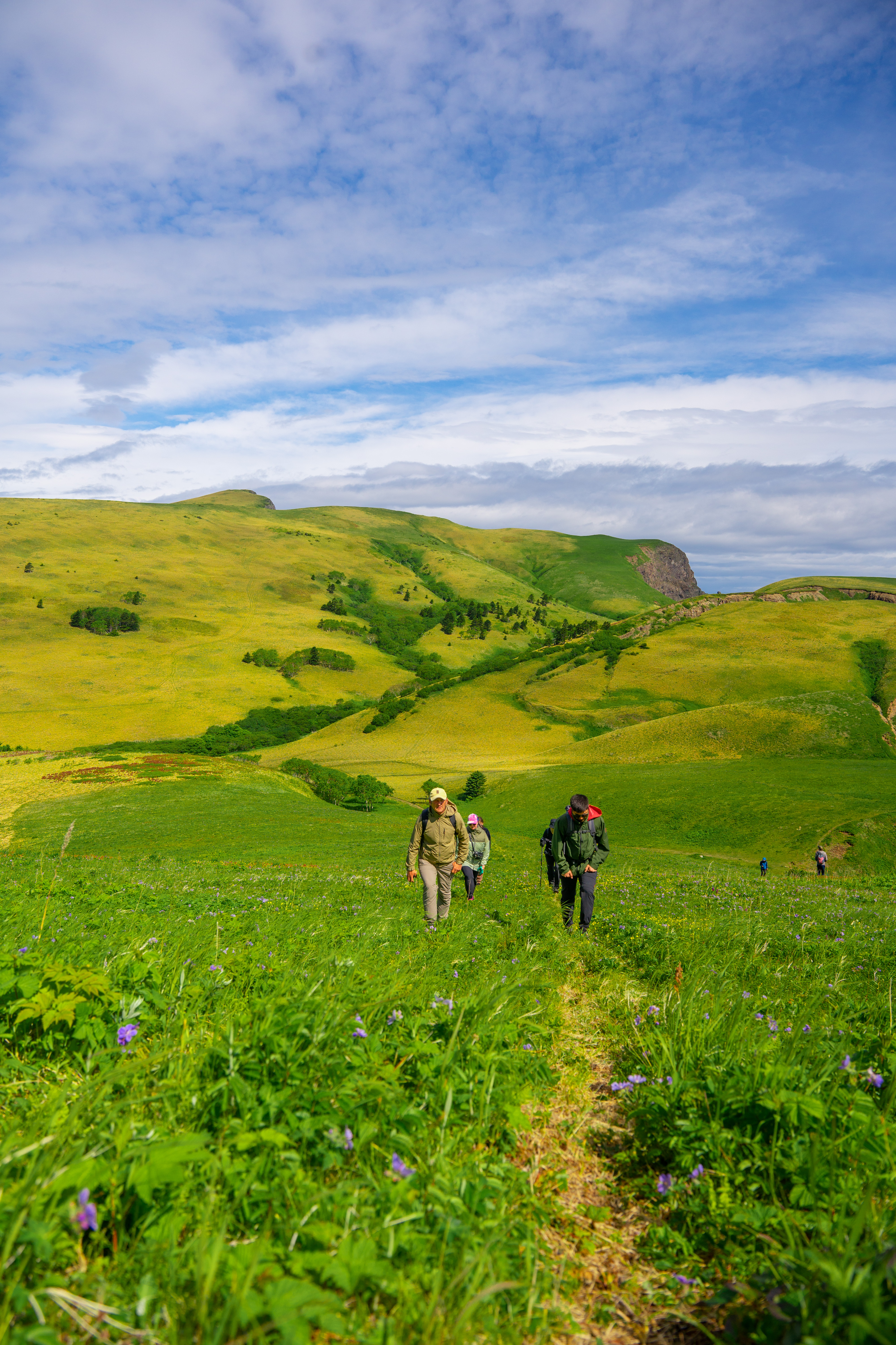 Отправление до начала трекингового маршрута к кальдере вулкана Головнина.