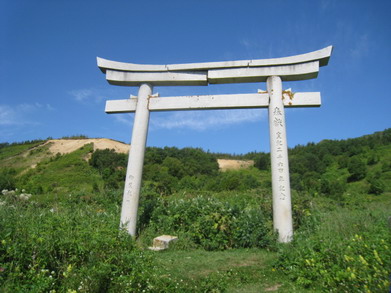 Остановка, осмотр ворот тории бывшего синтоистского храма.