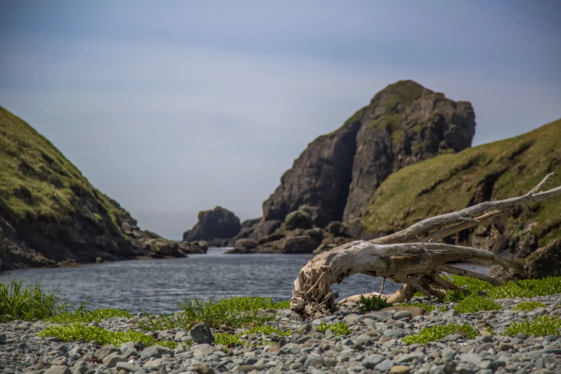 Бухта Безымянная — это одно из самых красивых мест, расположенных на восточной стороне острова Шикотан. Она известна своими прекрасными островками, которые находятся внутри бухты и напоминают исландский ландшафт. Пена у подножия каменных останцев меняет свои орнаменты. Океан отсюда то сияет в свете солнечных лучей, то становится свинцовым, то изумрудным.