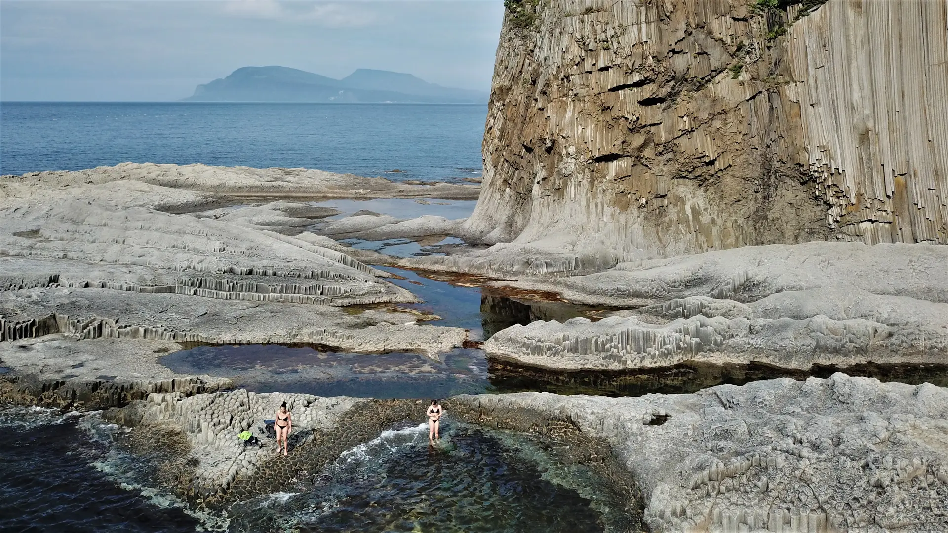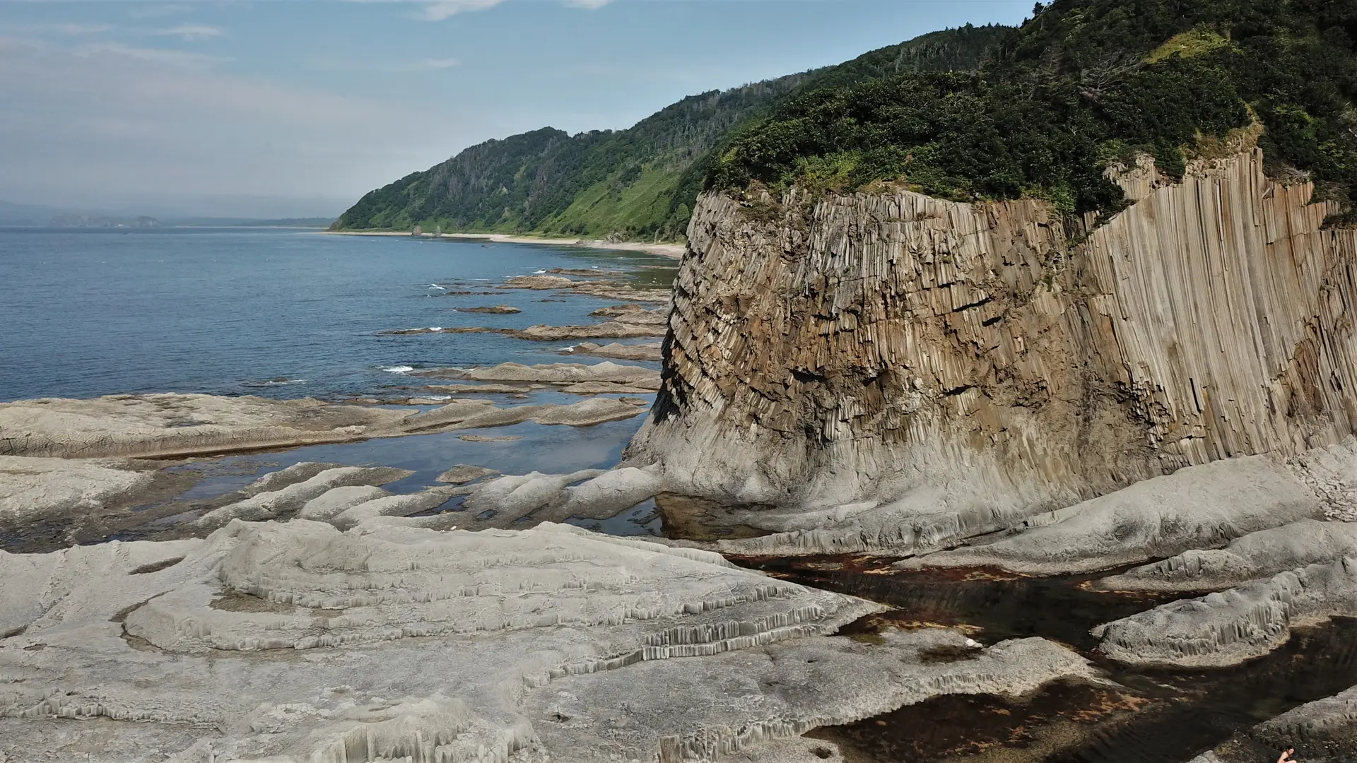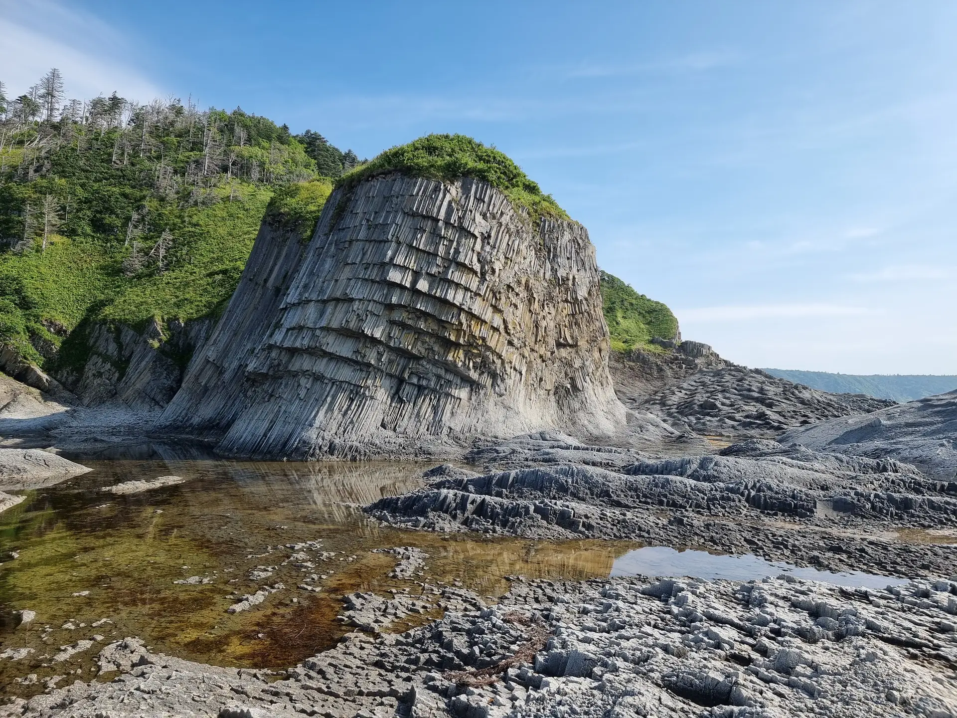 Мыс Столбчатый — это уникальное геологическим образование, состоящее из базальтовой лавы, окаменевшей после извержения вулкана Менделеева более 6 миллионов лет назад. Под воздействием определенных температур лава разделилась на правильные пяти-шестигранные столбики и поднялась на поверхность из океана. Мыс Столбчатый получил своё название из-за своей структуры, которая сформировалась в результате наслоений базальтовых лав вулкана.