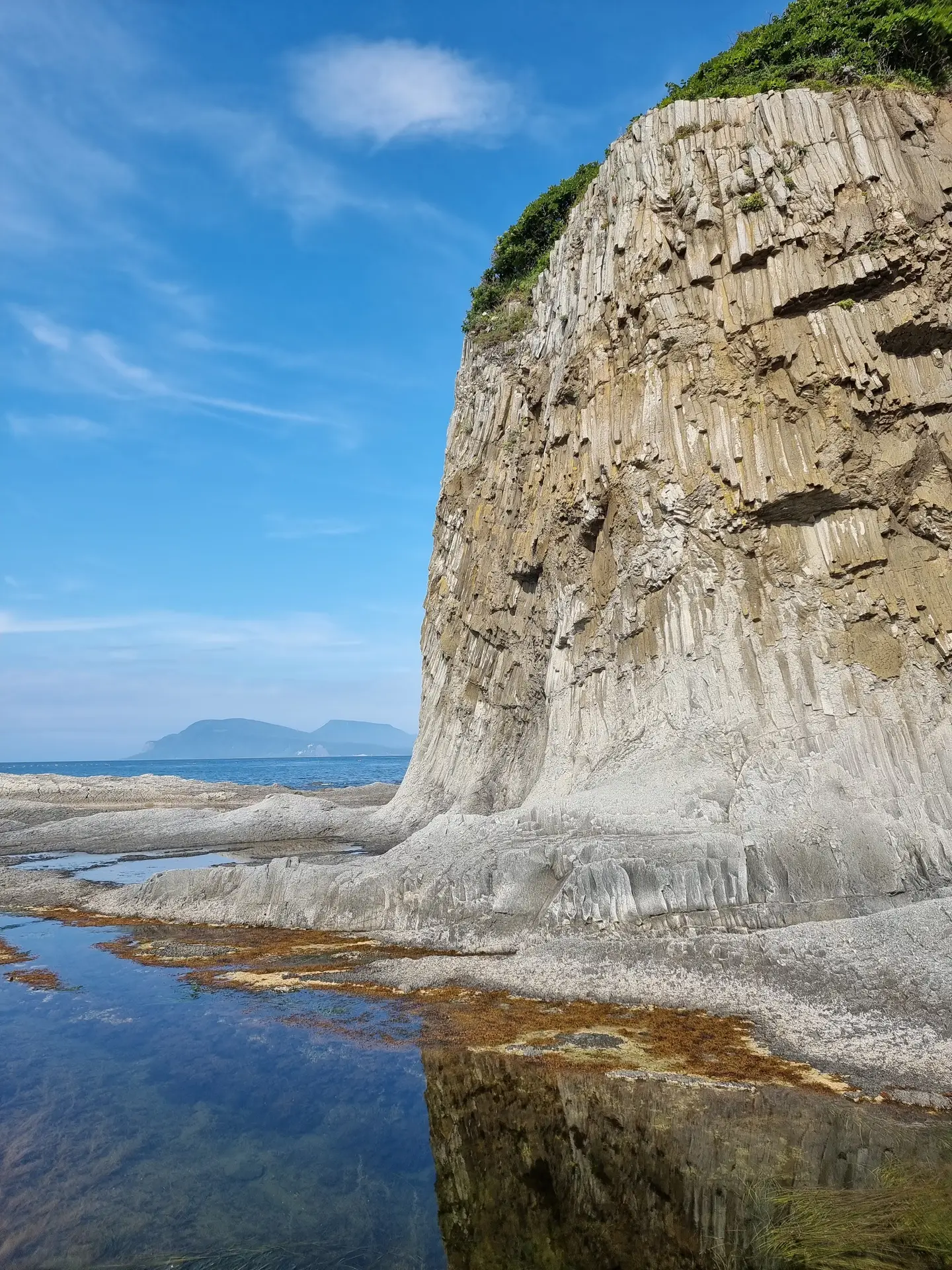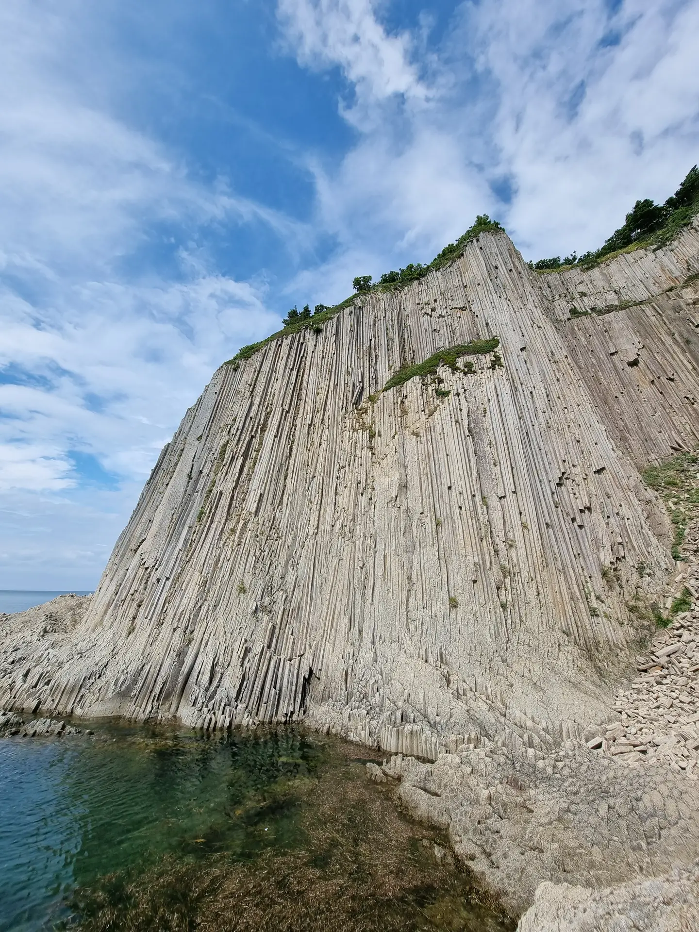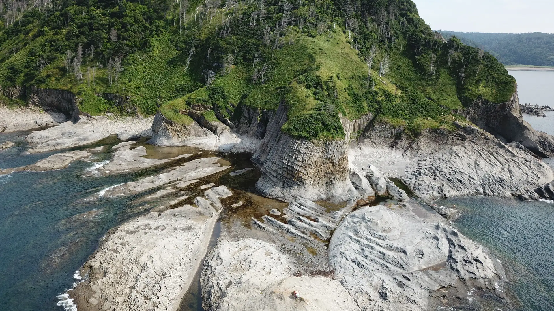 Мыс Столбчатый — это уникальное геологическим образование, состоящее из базальтовой лавы, окаменевшей после извержения вулкана Менделеева более 6 миллионов лет назад. Под воздействием определенных температур лава разделилась на правильные пяти-шестигранные столбики и поднялась на поверхность из океана. Мыс Столбчатый получил своё название из-за своей структуры, которая сформировалась в результате наслоений базальтовых лав вулкана.