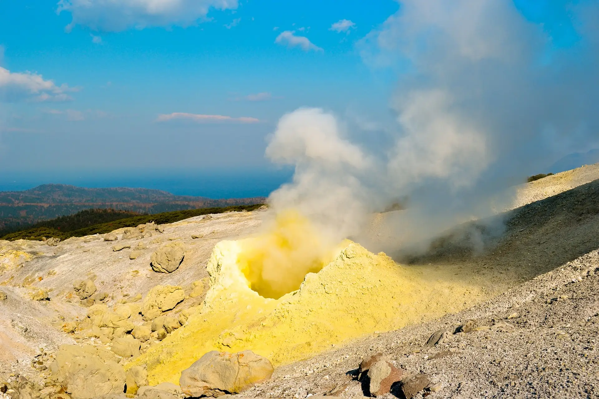 Фумарольное поле вулкана Менделеев — это места активной вулканической деятельности неподалеку от вулкана Менделеев на острове Кунашир, где через трещины в земле выделяются горячие газы и пары, что приводит к нагреву окружающих пород и образованию уникальных минералов. Это место привлекает как ученых для изучения вулканической активности, так и туристов, которые желают увидеть природные феномены.